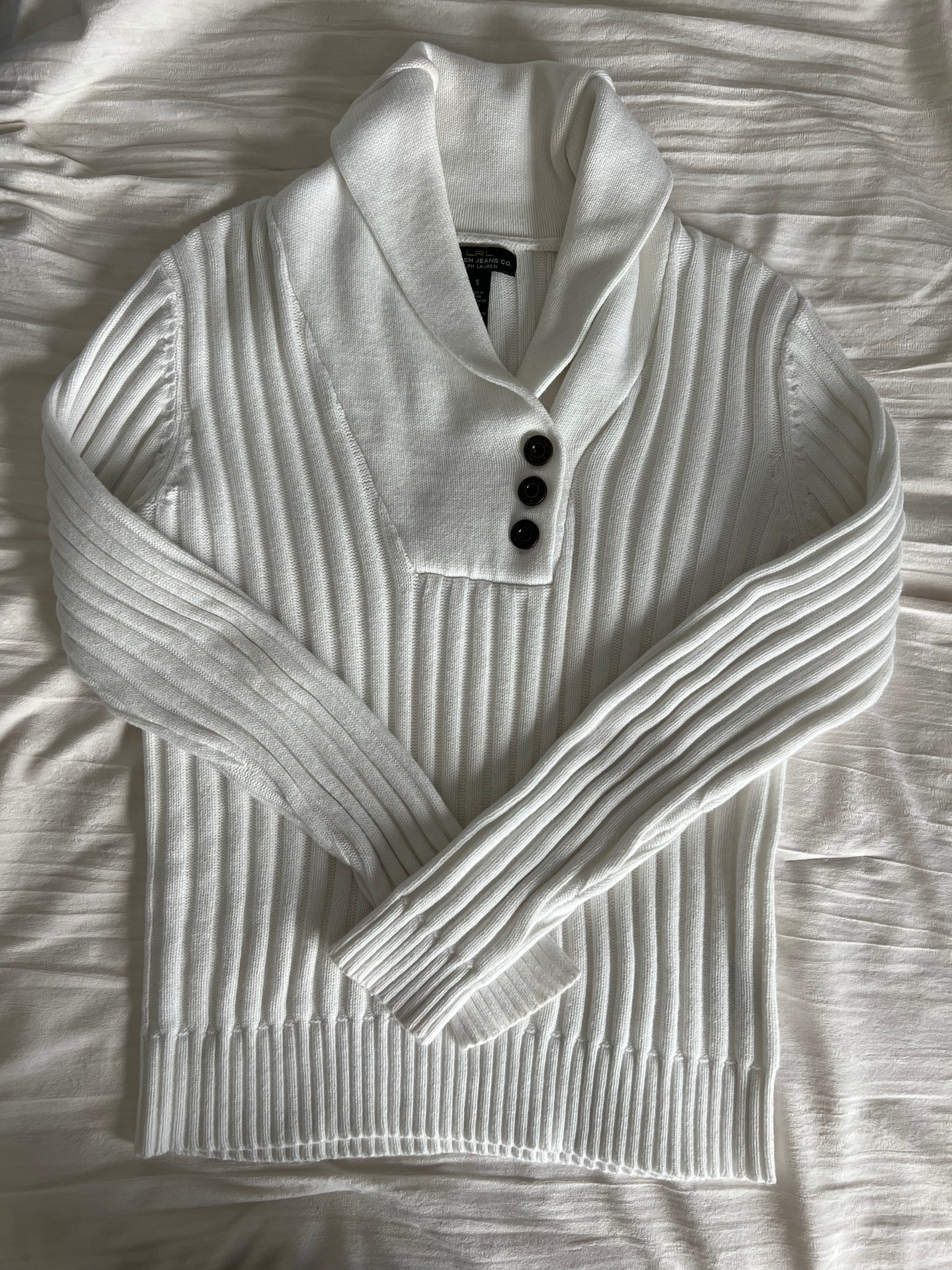 White Knit Button Sweater — Lauren Jeans Co. by Ralph Lauren